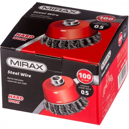 Чашечная щетка-крацовка для УШМ 100 мм, жгутированная стальная проволока 0.5 мм MIRAX 35104-100
