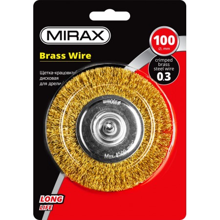 Щетка дисковая для дрели 100 мм, витая стальная латунированная проволока 0.3 мм MIRAX 35145-100