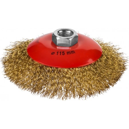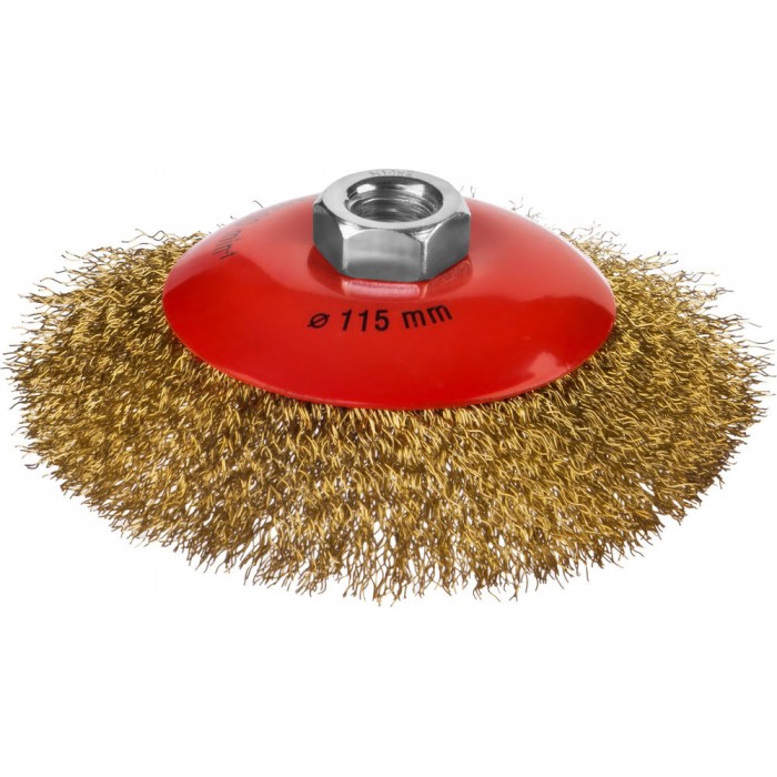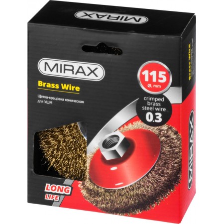 Коническая щетка-крацовка для УШМ 115 мм, витая стальная латунированная проволока 0.3 мм MIRAX 35143-115