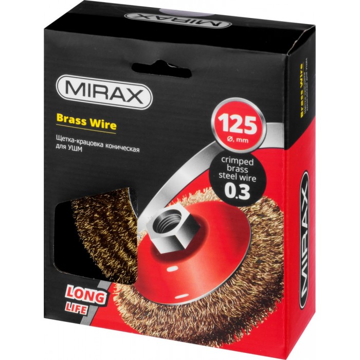 Каждая щетка-крацовка MIRAX проходит обязательный контроль качества. Все изготавливаемые щетки соответствуют действующим стандартам качества и обеспечивают безопасную работу в четко регламентированном диапазоне оборотов. Используется для зачистки поверхностей от лакокрасочных покрытий, ржавчины, окалины и различных загрязнений в труднодоступных местах.