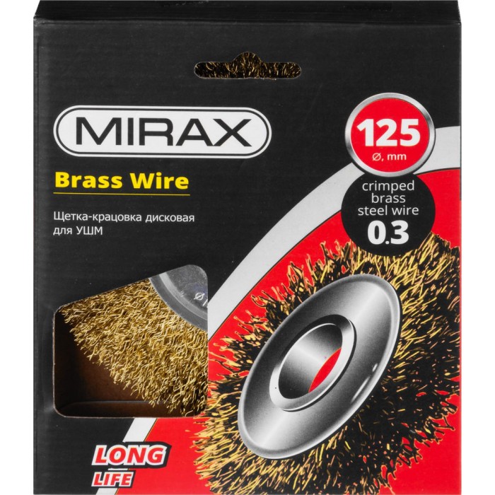 Каждая щетка-крацовка MIRAX проходит обязательный контроль качества. Все изготавливаемые щетки соответствуют действующим стандартам качества и обеспечивают безопасную работу в четко регламентированном диапазоне оборотов. Применяется на УШМ для зачистки поверхностей от лакокрасочных покрытий, ржавчины, окалины и различных загрязнений с поверхностей изделий из стали и цветных металлов.