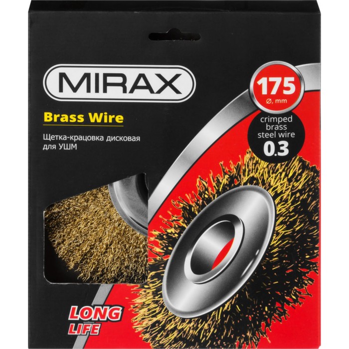 Каждая щетка-крацовка MIRAX проходит обязательный контроль качества. Все изготавливаемые щетки соответствуют действующим стандартам качества и обеспечивают безопасную работу в четко регламентированном диапазоне оборотов. Применяется на УШМ для зачистки поверхностей от лакокрасочных покрытий, ржавчины, окалины и различных загрязнений с поверхностей изделий из стали и цветных металлов.