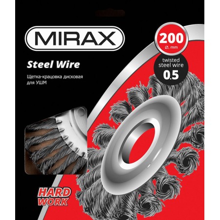 Щетка дисковая для УШМ 200 мм, жгутированная стальная проволока 0.5 мм MIRAX 35140-200
