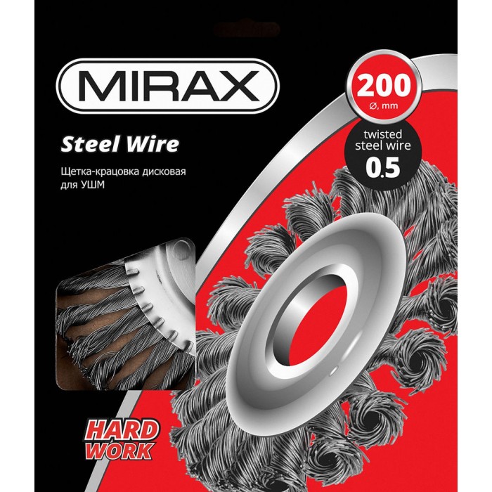 Все изготавливаемые щетки MIRAX соответствуют действующим стандартам качества и обеспечивают безопасную работу в указанном диапазоне оборотов. Применяются на УШМ для зачистки поверхностей в труднодоступных местах от лакокрасочных покрытий, ржавчины, окалины, различных загрязнений с применением значительных усилий, а также для зачистки сварных швов.