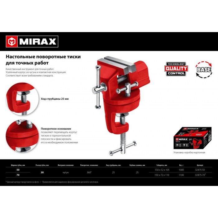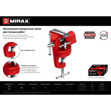 Настольные поворотные тиски для точных работ 50 мм MIRAX 32475-50