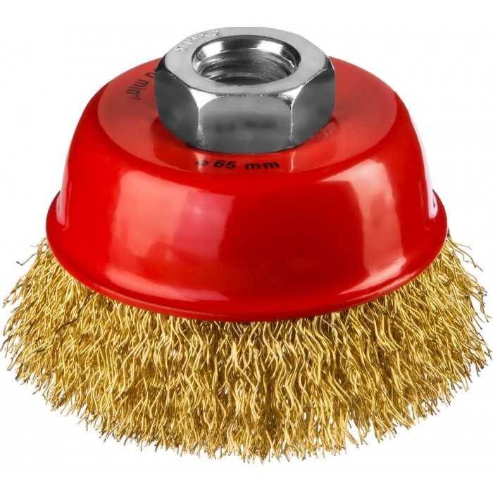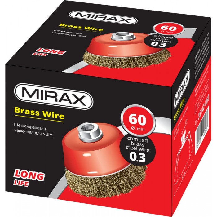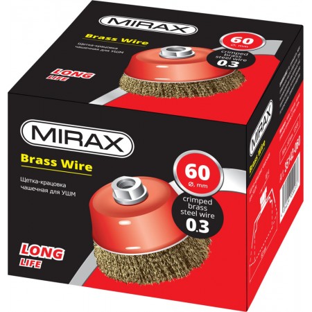 Чашечная щетка-крацовка для УШМ 60 мм, витая стальная латунированная проволока 0.3 мм MIRAX 35142-060