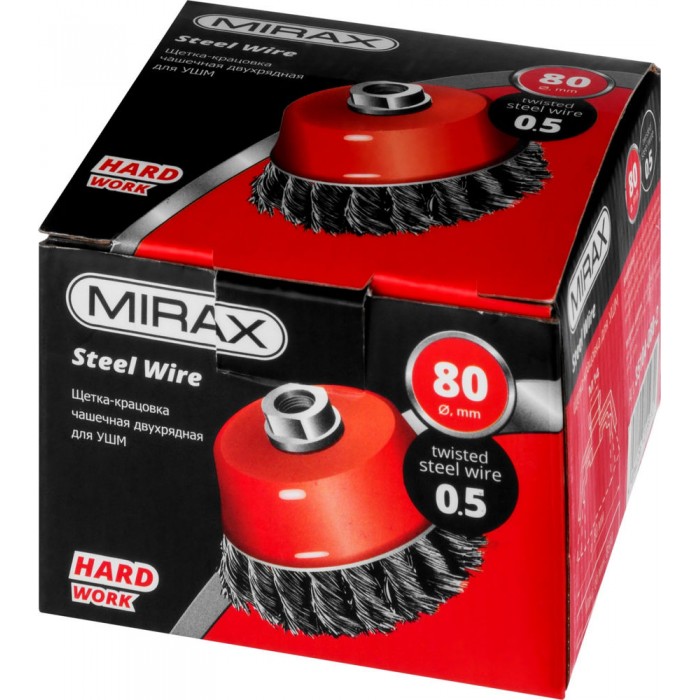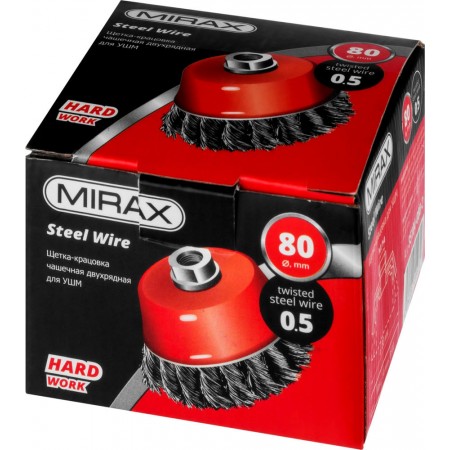Чашечная щетка-крацовка для УШМ 80 мм, жгутированная стальная проволока 0.5 мм MIRAX 35104-080-2