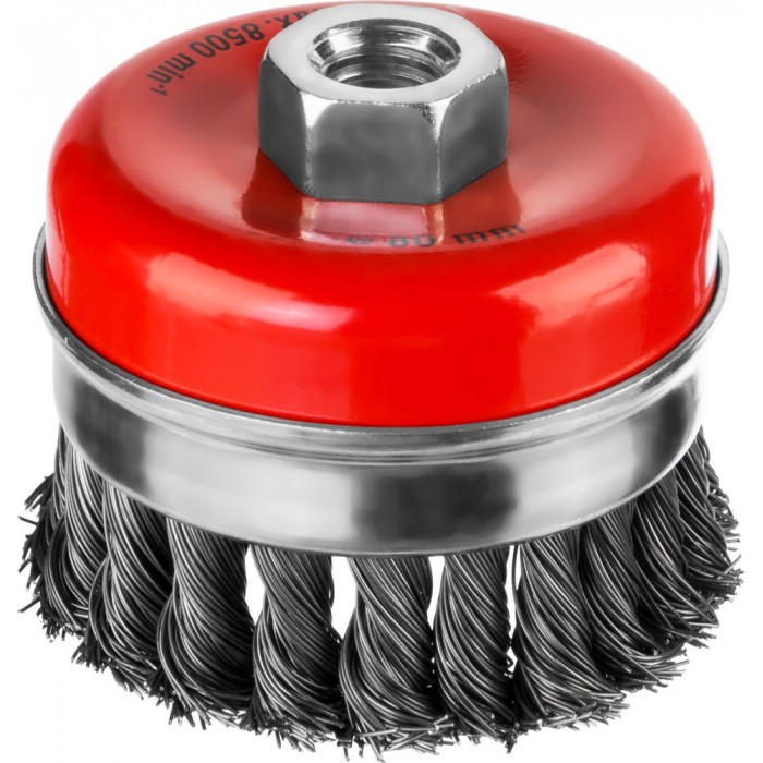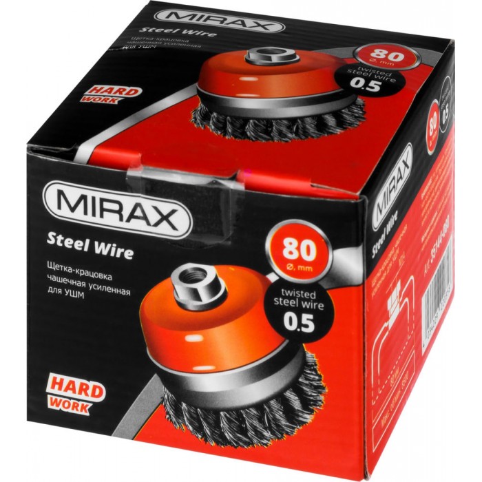 Чашечная щетка-крацовка для УШМ 80 мм, жгутированная стальная проволока 0.5 мм MIRAX 35144-080