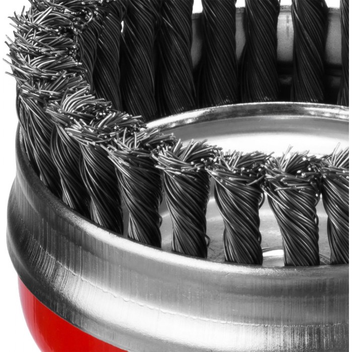 • Повышенный ресурс щетки благодаря еще более высокой жесткости сплетенного пучка и увеличенной толщине проволоки