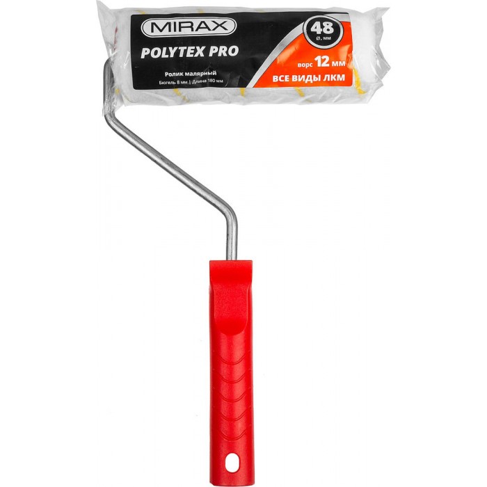 Малярный валик POLYTEX PRO, 48 х 180 мм, бюгель 8 мм, ворс 12 мм, полиакрил/полиэстер, все виды ЛКМ MIRAX 03816-18