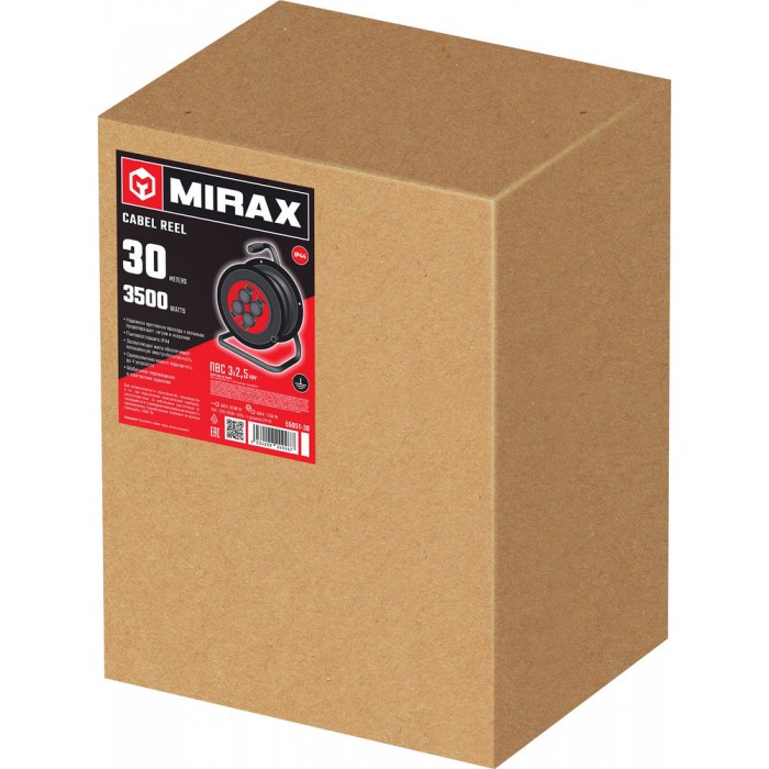 Силовой удлинитель на катушке 3 х 2.5 мм? 30 м ПВС 3500 Вт IP44 MIRAX 55051-30