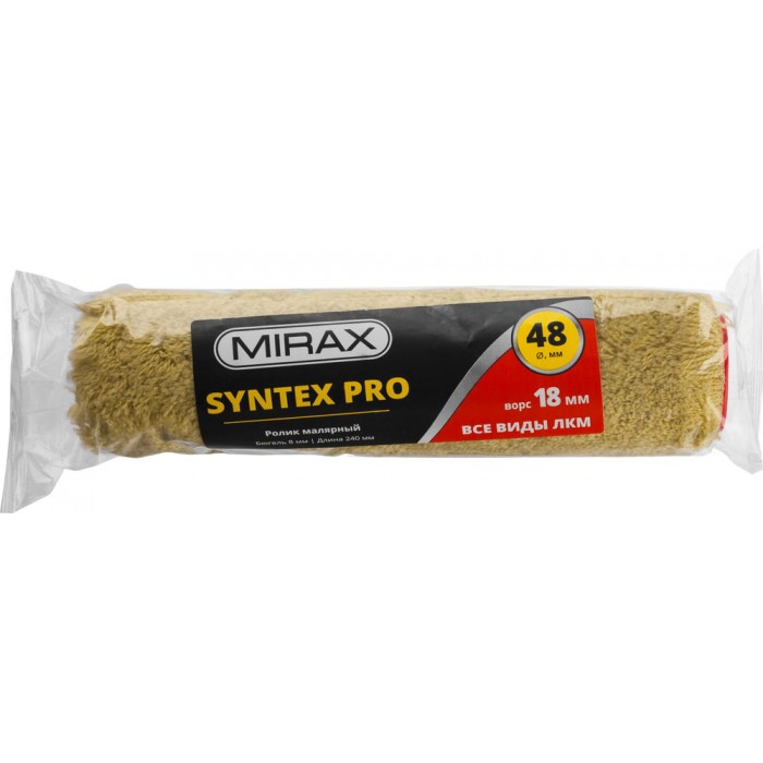 Малярный ролик SYNTEX PRO, 48 х 240 мм, бюгель 8 мм, ворс 18 мм, полиакрил/полиэстер, все виды ЛКМ MIRAX 02815-24