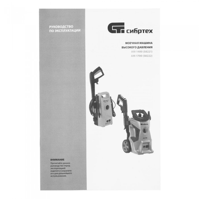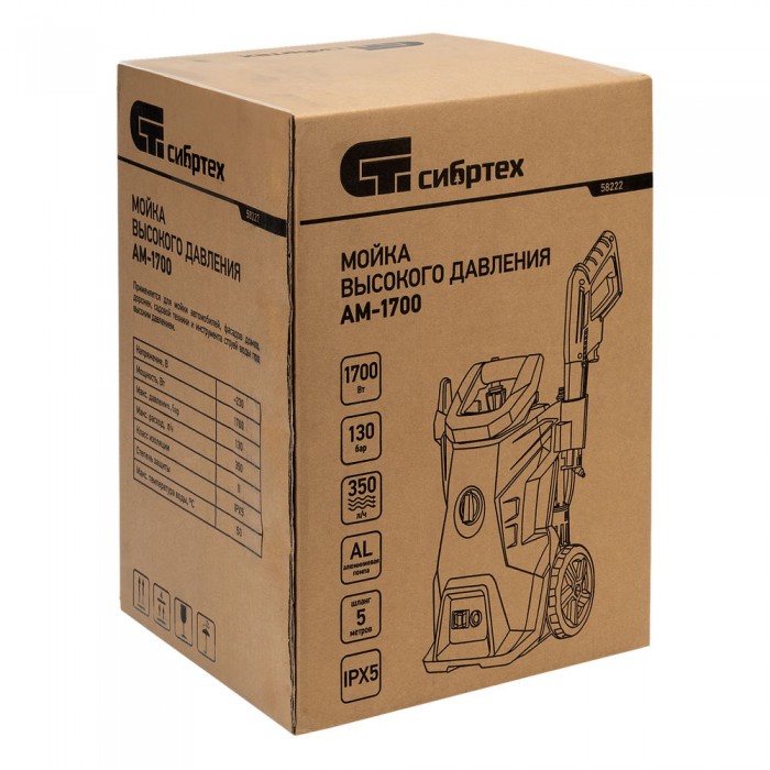 Моечная машина высокого давления АМ-1700, 1700 Вт, 130 бар, 350 л/ч, колесная Сибртех (58222)