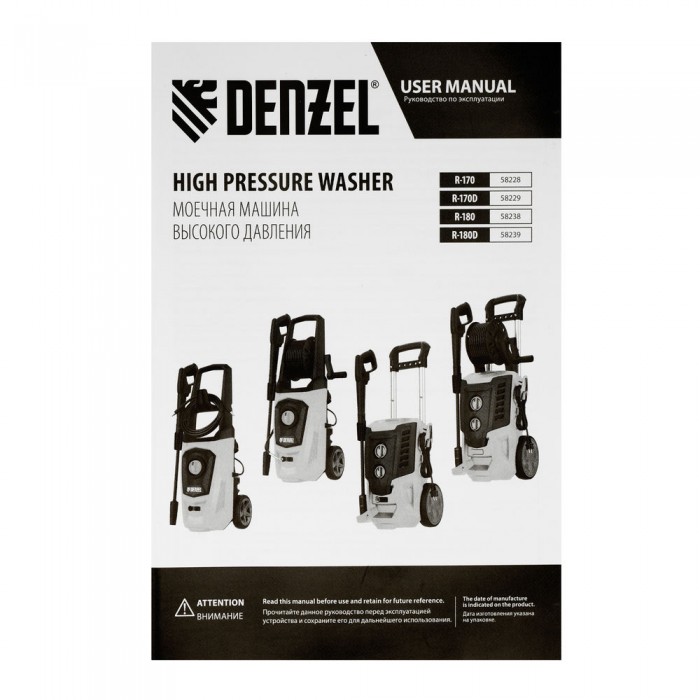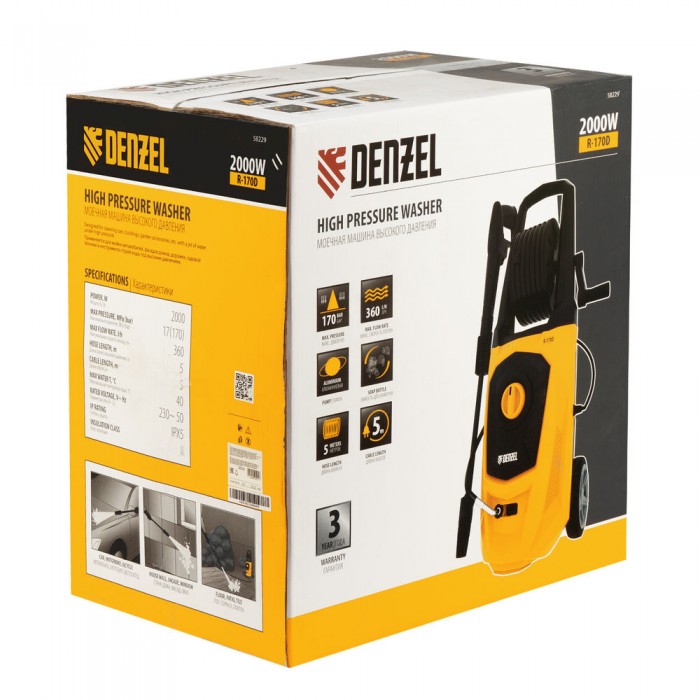 Моечная машина высокого давления R-170D, 2000 Вт, 170 бар, 360 л/ч, с барабаном Denzel (58229)