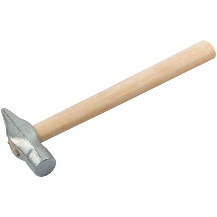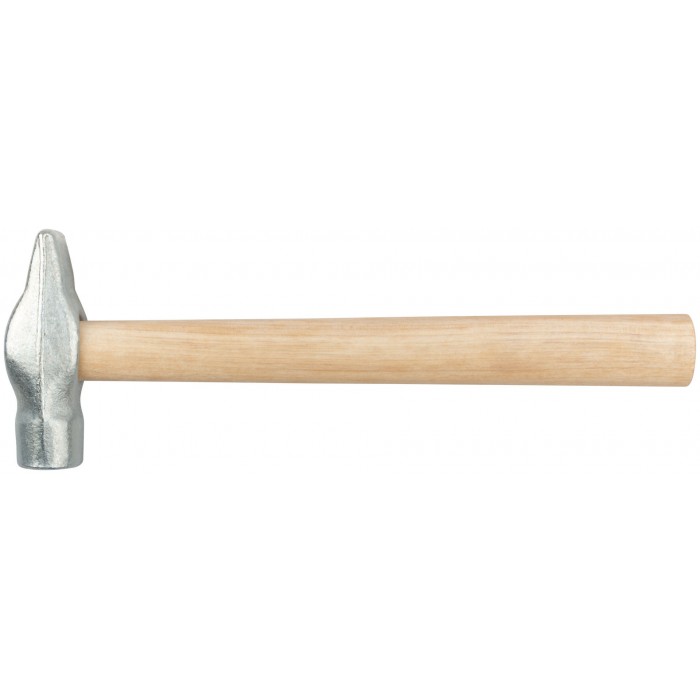 С круглым бойком, оцинкованный. Материал: инструментальная сталь, деревянная ручка.