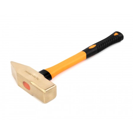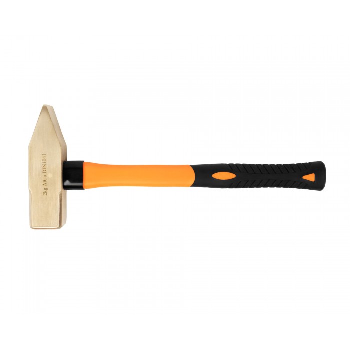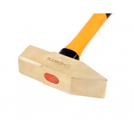 Молоток слесарный с фиберглассовой рукоятью искробезопасный HORTZ, Выполнен из специального сплава, изделия из которого не высекают искр при ударах. Используется для забивания гвоздей или разбивания разнообразных предметов при различных слесарных работах в потенциально взрывоопасных зонах — зонах повышенной опасности возникновения взрыва или возгорания вследствие появления искры. Боек имеет квадратную форму и отличается повышенной прочностью. Эргономичная фибергласовая рукоятка с прорезиненным основанием гарантирует надежный хват и не скользит в руках при работе. Изготавливается в двух вариантах сплавов: алюминиевая бронза и бериллиевая бронза (AL-Cu & Be-Cu). Высокая прочность, высокое качество. Сертифицирован в соответствии со стандартами взрывобезопасности ТР ТС 012/2011.