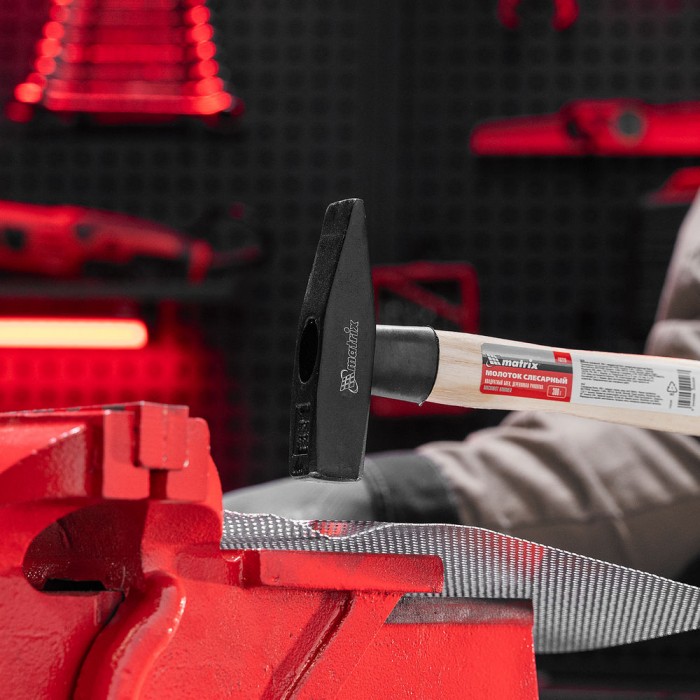 Молоток слесарный, 300 г, квадратный боек, деревянная рукоятка Matrix