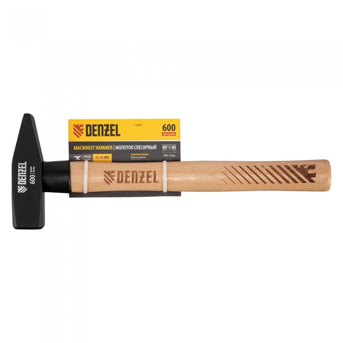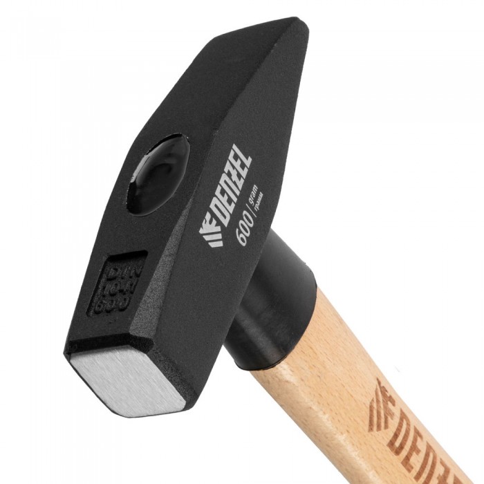 Молоток слесарный, 600 г, кованый квадратный боек, буковая рукоятка Denzel (10431)