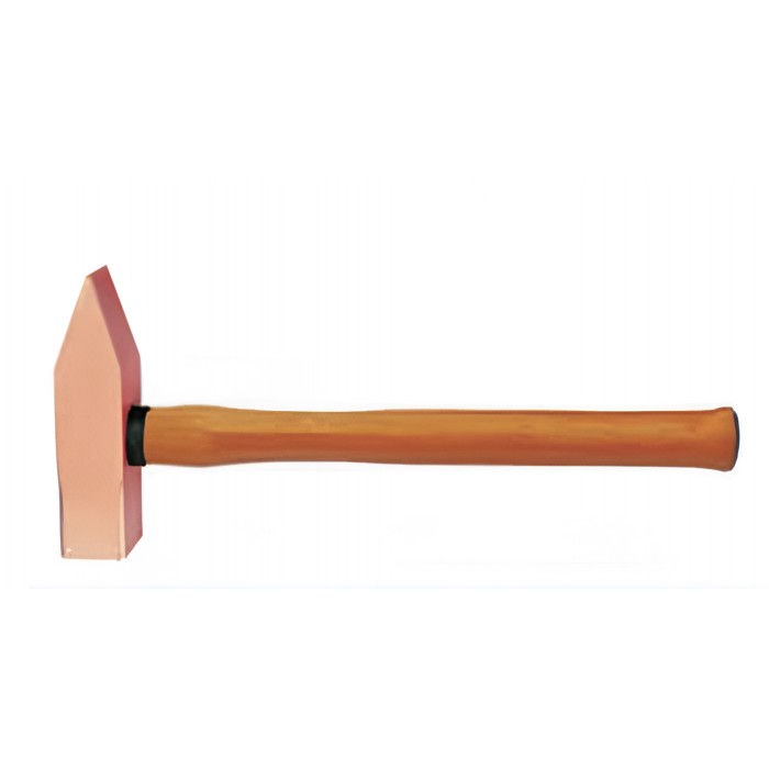 Молоток слесарный с деревянной рукоятью искробезопасный HORTZ, Выполнен из специального сплава, изделия из которого не высекают искр при ударах. Используется для забивания гвоздей или разбивания разнообразных предметов при различных слесарных работах в потенциально взрывоопасных зонах — зонах повышенной опасности возникновения взрыва или возгорания вследствие появления искры. Боек имеет квадратную форму и отличается повышенной прочностью. Деревянная рукоятка выполнена из твердых пород дерева и не подвержена рассыхания и расслаиванию. Изготавливается в двух вариантах сплавов: алюминиевая бронза и бериллиевая бронза (AL-Cu & Be-Cu). Высокая прочность, высокое качество. Сертифицирован в соответствии со стандартами взрывобезопасности ТР ТС 012/2011.