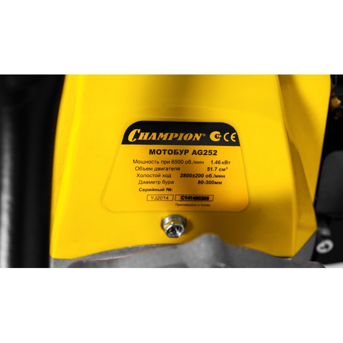 Мотобур 1,46кВт 51,7см? 9,2кг шнек 200?550 CHAMPION AG252