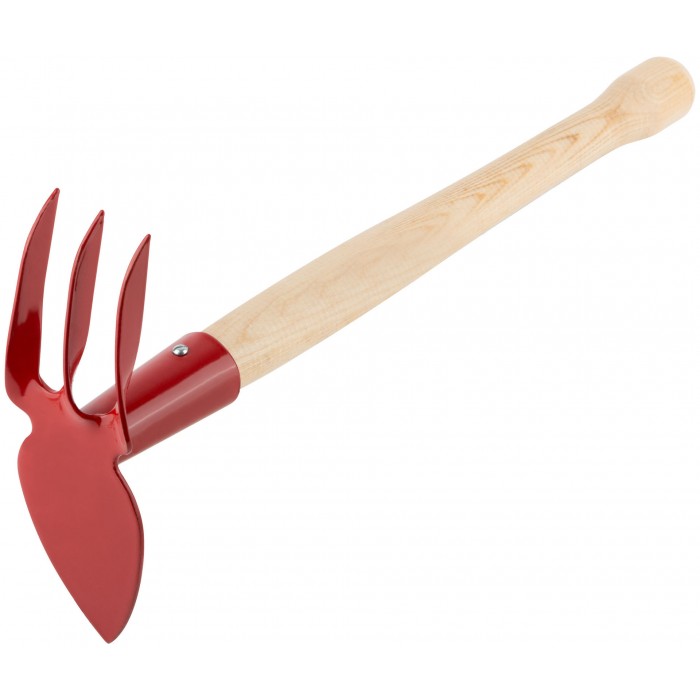 Мотыжка комбинированная с деревянной ручкой, 3 витых зуба, профиль лепесток (76813)