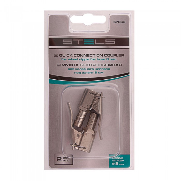 Муфта быстросъемная для колесного ниппеля со штуцером "елка" под шланг 8 мм, 2 шт, Stels (57063)
