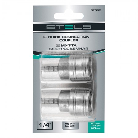 Муфта универсальная быстросъемная ("мама") 1/4, со штуцером "елка" под шланг 6 мм, 2 шт, Stels (57052)