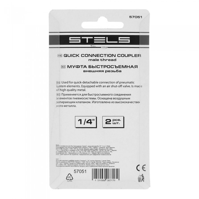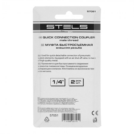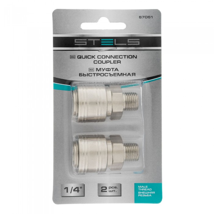 Муфта универсальная быстросъемная ("мама") 1/4, внешняя резьба, 2 шт, Stels (57051)
