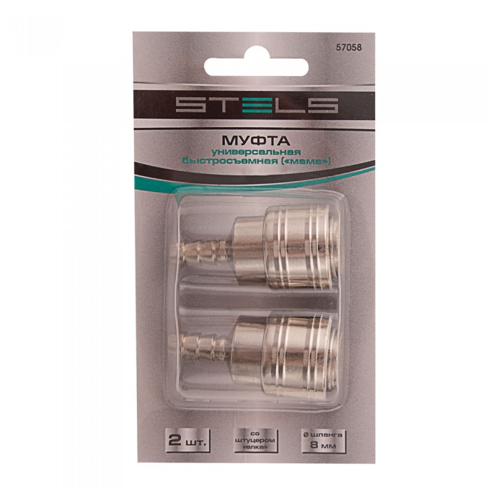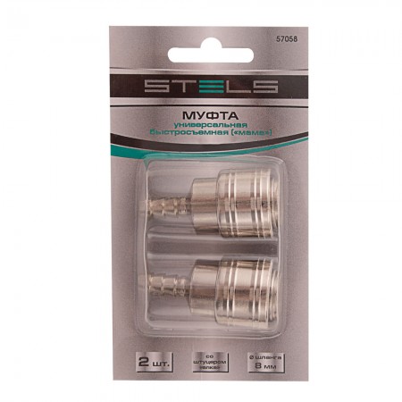 Муфта универсальная быстросъемная ("мама") 3/8, со штуцером "елка" под шланг 8 мм, 2 шт, Stels (57058)