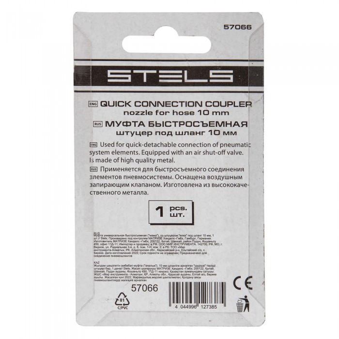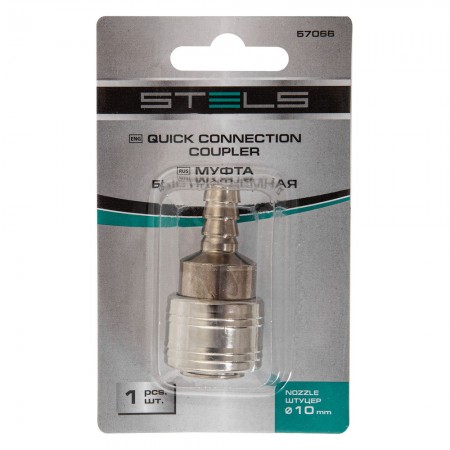 Муфта универсальная быстросъемная ("мама") со штуцером "елка" под шланг 10 мм, 1 шт, Stels (57066)