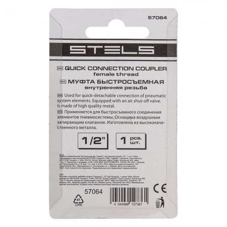 Муфта универсальная быстросъемная ("мама") внутренняя резьба 1/2, 1 шт, Stels (57064)