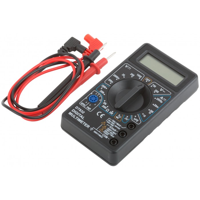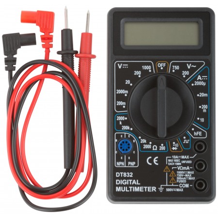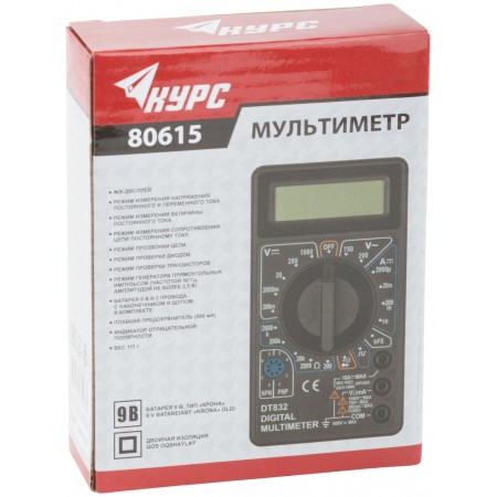 Подает звуковой сигнал в режиме проверки целостности электроцепи. Индикация разряда батареи. Батарея 9 В и 2 провода с наконечником и щупом в комплекте. Диапазон измерения напряжения постоянного тока - 0,1 мВ - 1000 В. Диапазон измерения напряжения переменного тока - 0,1 В - 750 В. Диапазон измерения величины постоянного тока - 1 мкА - 10 А. Диапазон измерения сопротивления цепи постоянному току - 0,1 Ом - 2 МОм.