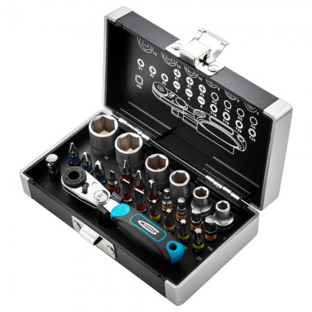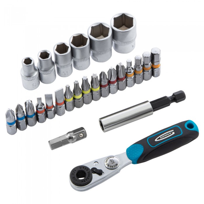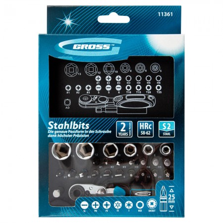 Набор бит и головок торцевых, 1/4, магнитный адаптер, сталь S2, пластиковый кейс, 26 предметов Gross (11361)