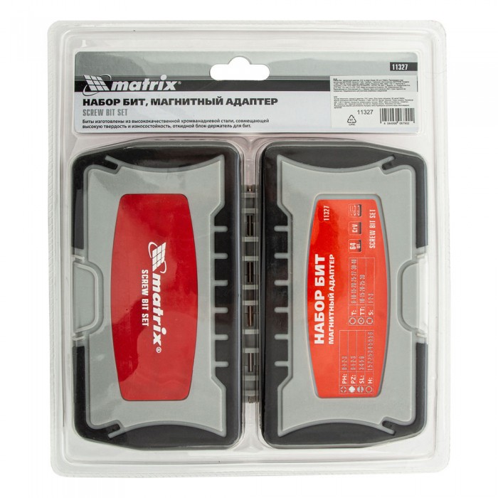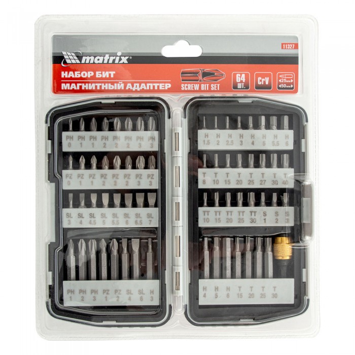 Набор бит, магнитный адаптер, CrV, пластиковый кейс, 64 шт. Matrix (11327)