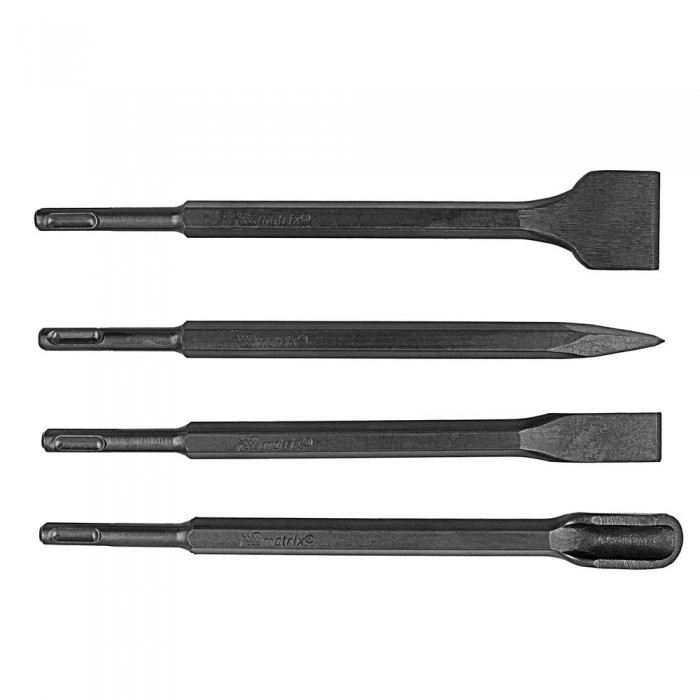 Набор буров по бетону, 6-8-10 х 160, 8-10-12 х 210, 10-12-14 х 260 мм, зубила 4 шт, SDS Plus Matrix (71098)