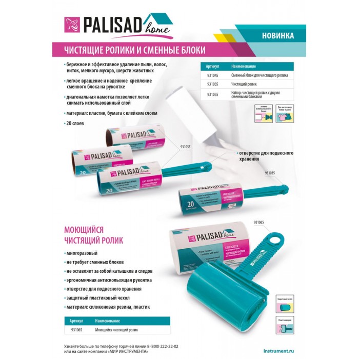 Набор: чистящий ролик для одежды с двумя сменными блоками, 20 слоев, Home Palisad (931055)