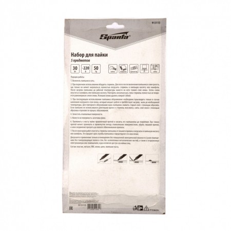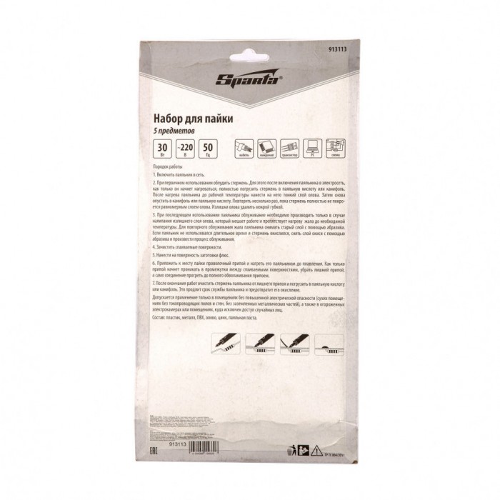 Набор для пайки, 5 предметов: паяльник 30 Вт, подставка, жало, паста, припой Sparta (913113)