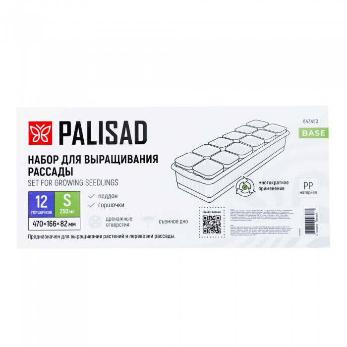 Набор для рассады, поддон 470х166х82 мм, 12 горшочков по 250 мл. с выдвижным дном Palisad (643450)