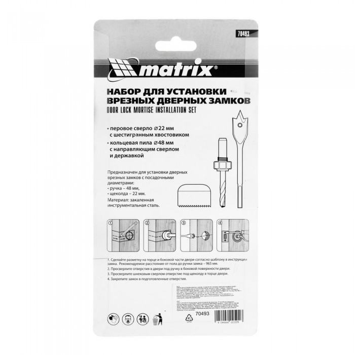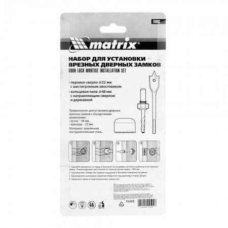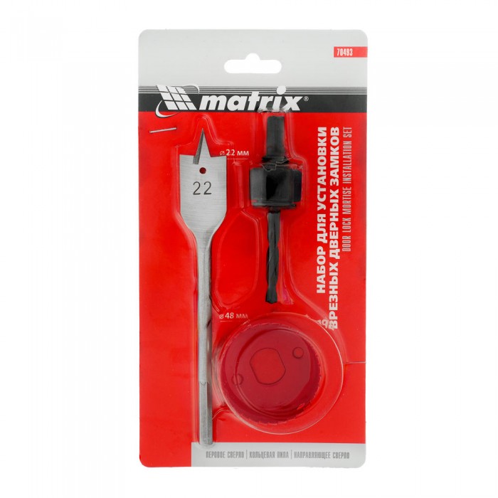 Набор для установки врезных замков, 22 мм х 48 мм, перовое сверло, кольцевая пила Matrix (70493)