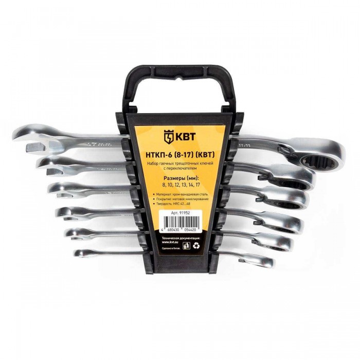 Набор гаечных комбинированных трещоточных ключей с переключателем реверса НТКП-6 (8-17) серия КВТ-PROFESSIONAL (КВТ)