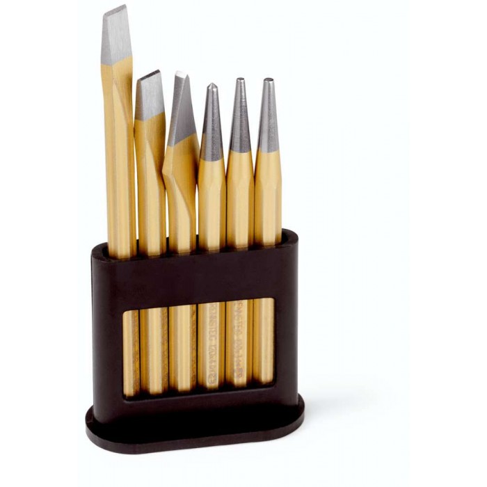 Набор инструментов по металлу, 6 пр., Зубила плоские 125 / 150 мм, Крейцмейсель 125 мм, Кернер O 4 мм, Пробойники O 3 / 4 мм, подставка (RE-4210000)