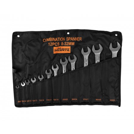 Набор комбинированных ключей HORTZ (8-32) 12 шт — это идеальное решение для тех, кто ценит качество и многофункциональность. В набор входят ключи различных размеров, что делает его незаменимым в гараже, мастерской или на производстве. Входящие в набор ключи можно применять при работе с любым видом шестигранных крепежей. Надежные материалы и эргономичный дизайн обеспечивают комфорт и безопасность при работе. Все ключи выполнены из высокосортной хром-ванадиевой стали. Сумка-скрутка с кармашками под каждый ключ для удобства хранения и перемещения набора ключей. Состав набора: 12 предметов (8-32) 8х8, 10х10, 12х12, 13х13, 14х14, 17х17, 19х19, 22х22, 24х24, 27х27, 30х30, 32х32 (сумка скрутка)