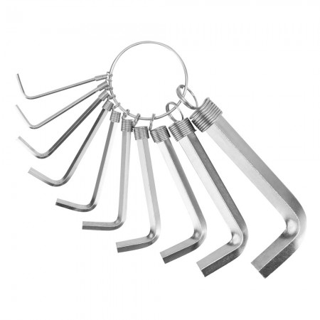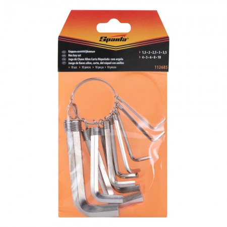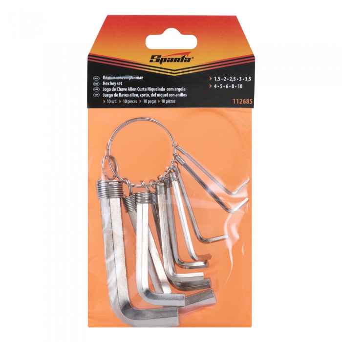 Набор ключей имбусовых HEX, 1.5-10 мм, CrV, 10 шт, никелированный, на кольце Sparta