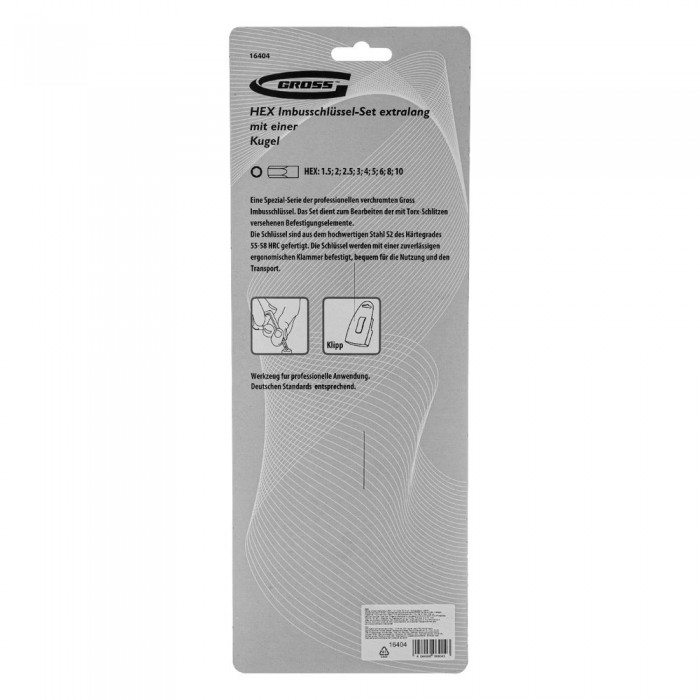 Набор ключей имбусовых HEX, 1.5-10 мм, S2, 9 шт, экстра-длинные с шаром, сатинированные Gross