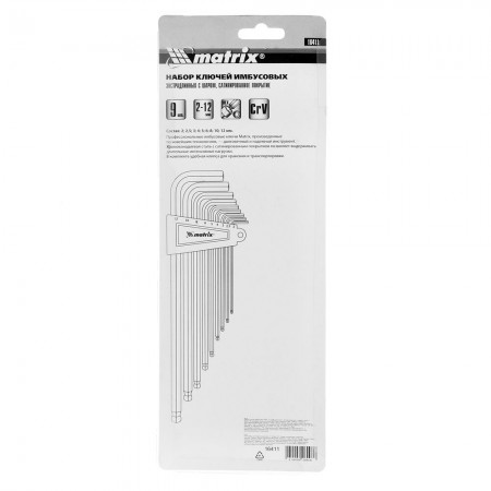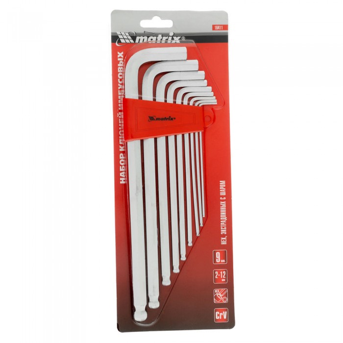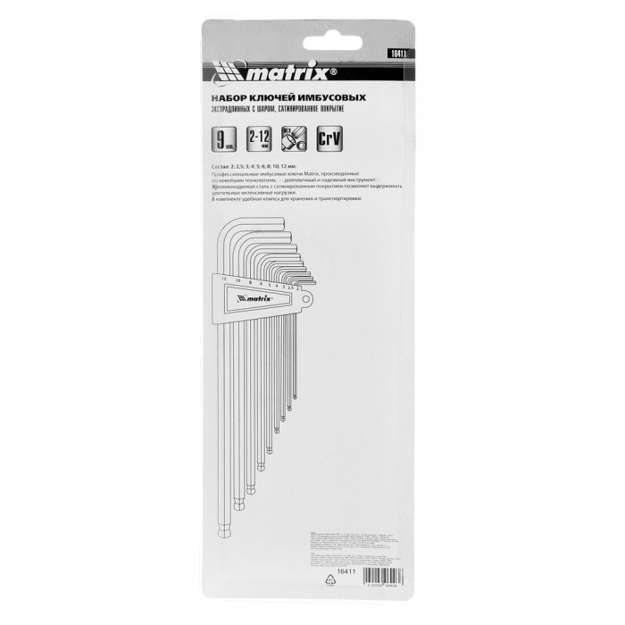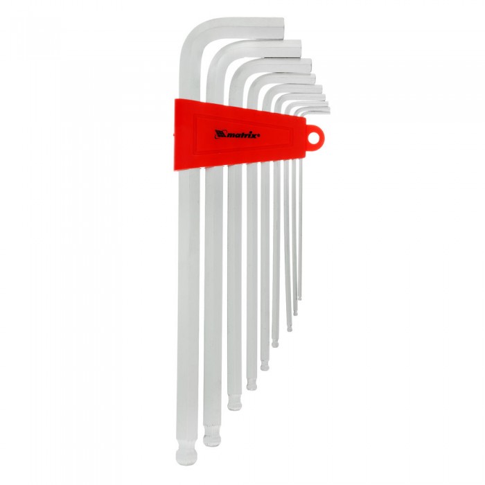 Набор ключей имбусовых HEX, 2-12 мм, CrV, 9 шт, экстра-длинные, c шаром, сатин Matrix