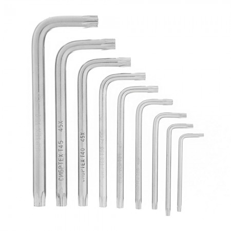 Набор ключей имбусовых Tamper-Torx , 9 шт: ТT10-ТT50.45x, закаленные, короткие, никель Сибртех