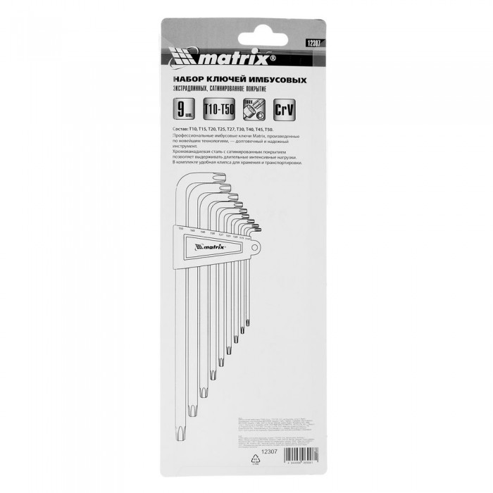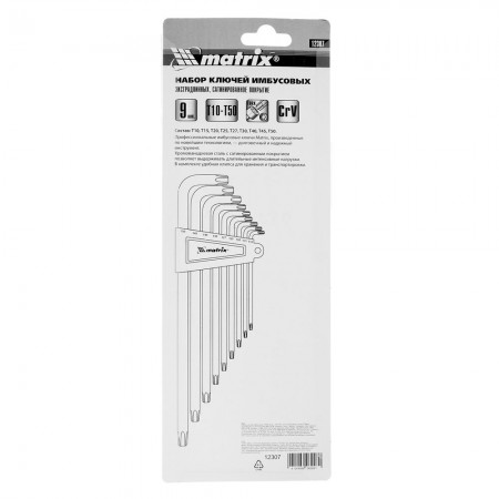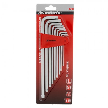 Набор ключей имбусовых Torx , 9 шт, T10-T50, CrV, экстра-длинные с сатинированным покрытием Matrix