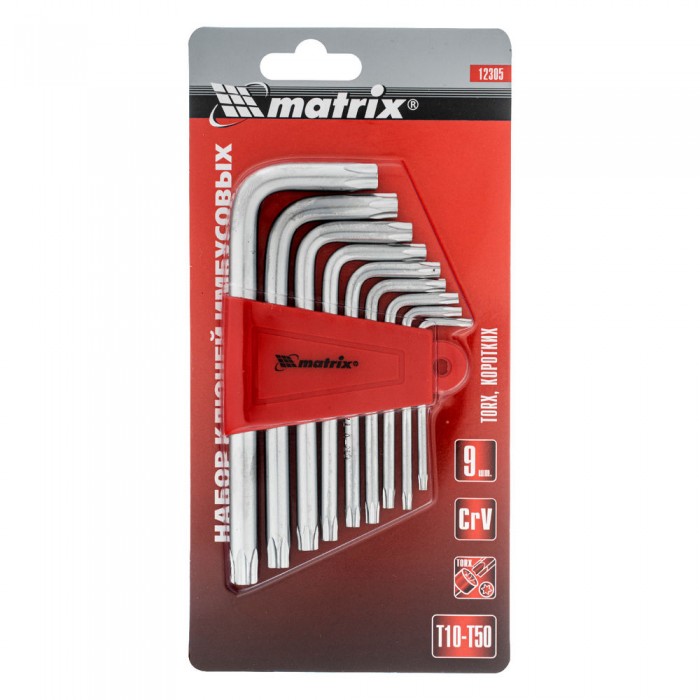 Набор ключей имбусовых Torx , 9 шт, T10-T50, CrV, коротких, с сатинированным покрытием Matrix