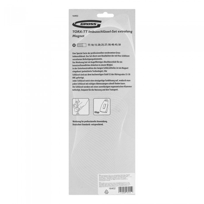 Набор ключей имбусовых Torx -TT, 9 шт: T10-T50, магнит, S2, экстра-длинные, хром/краска 9 шт Gross