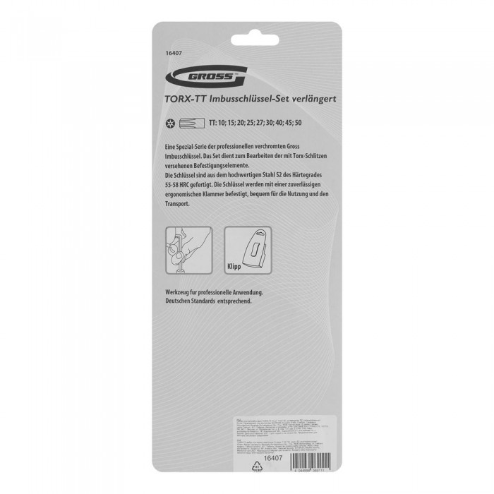 Набор ключей имбусовых Torx -TT, 9 шт: T10-T50, удлиненные, S2, сатинированные Gross